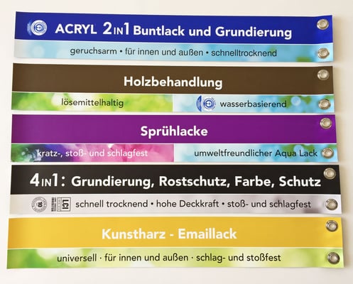 Werbeblachen (Banner) sind mobil, schnell einsetzbar, wetterfest, robust und für die vielfältigsten Anforderungen geeignet. Wir bieten Ihnen erstklassige Qualität und eine fixfertige Konfektion mit Ösen und/oder Hohlsaum. Ausführung in unterschiedlichen Materialien wie PVC oder Textil-Mesh. Ideal zum Beispiel für die Montage an Baugerüsten.